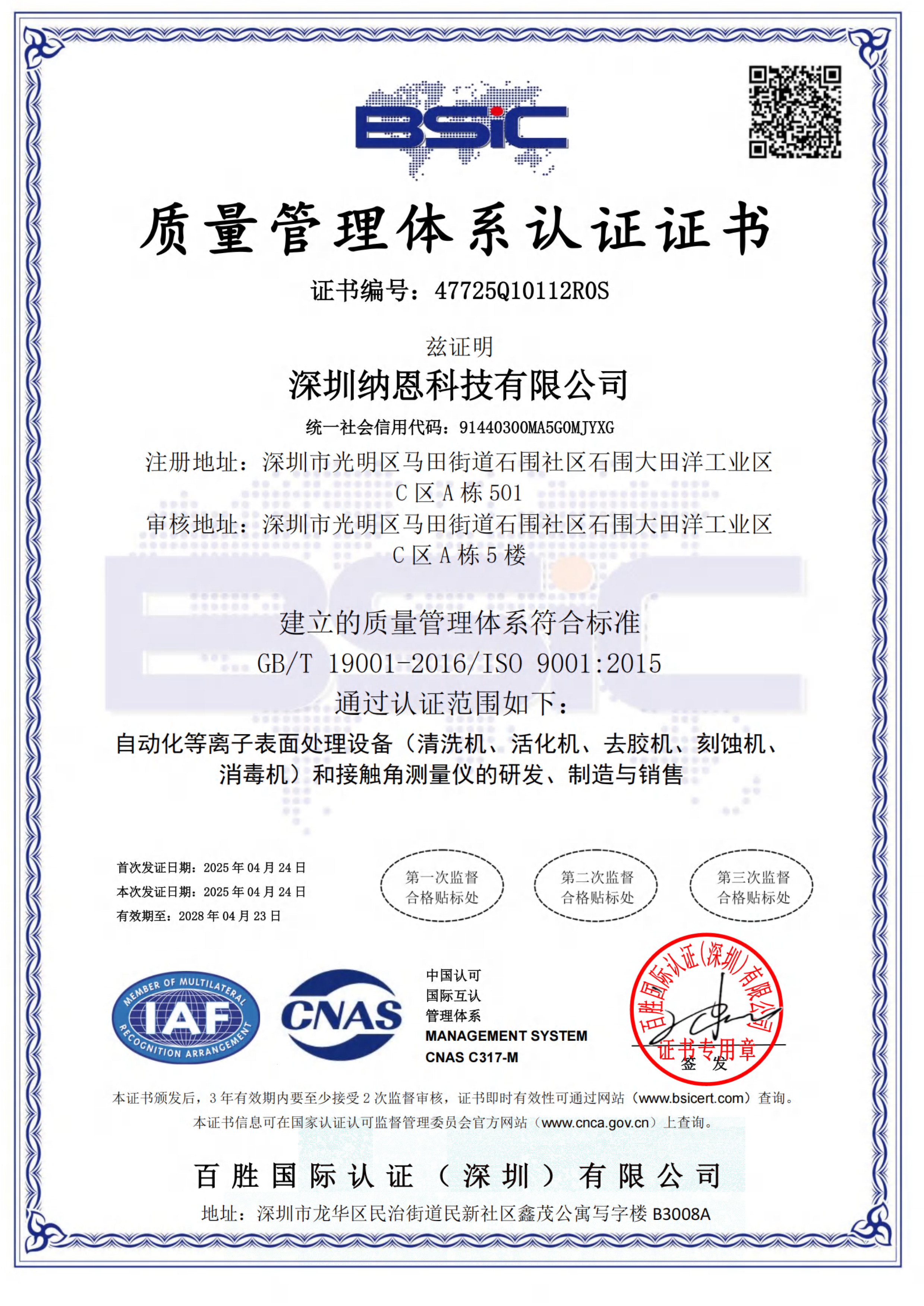 深圳納恩科技有限公司,是一家以中國為基地、面向全球的國家高新技術(shù)企業(yè)、科技型企業(yè),專注于等離子高端設(shè)備研發(fā),生產(chǎn)與銷售,憑借對等離子核心技術(shù)的深度掌握,為全球各行各業(yè)提供極具競爭力的表面處理創(chuàng)新解決方案,穩(wěn)居國際等離子體技術(shù)領(lǐng)域領(lǐng)先陣營。